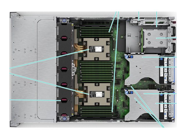 | Gränssnitt | 1 x HPE iLO (1 på framsidan) (service port) 5 x USB 3.2 Gen 1 (1 fram, 2 bak, 2 interna) 1 x VGA |