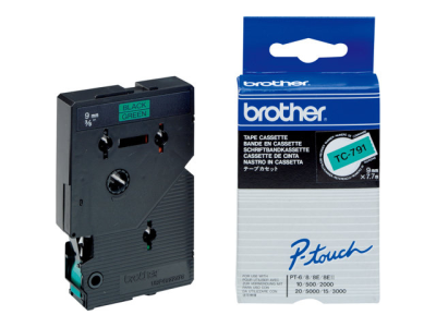 Brother TC791 - 9 mm x svart på grön - bandlaminat - för P-Touch PT-2000, PT-3000, PT-500, PT-5000, PT-8E