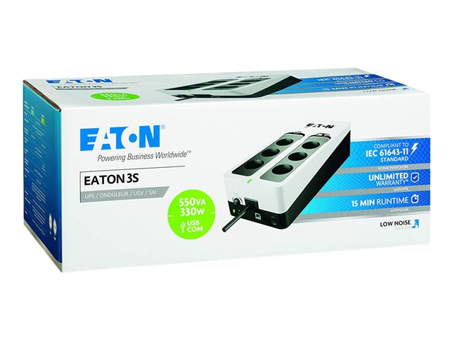 Eaton 3S 550 - UPS - AC 220-240 V - 330 Watt - 550 VA - 1-fas - USB - utgångskontakter: 6